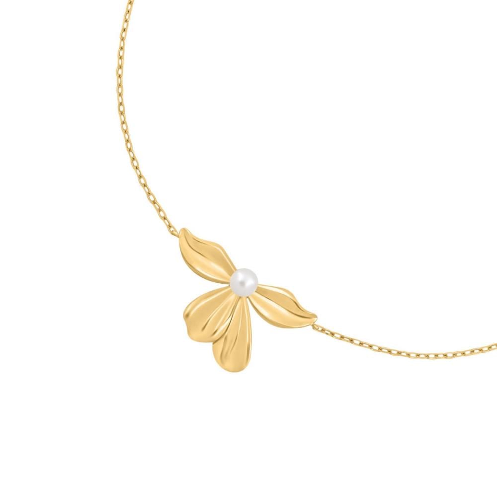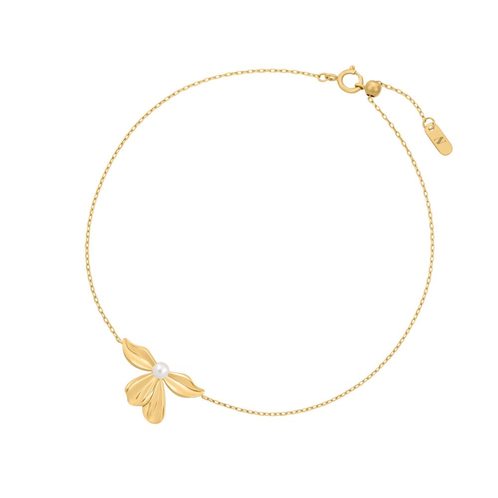 • اسوارة ذهب أنيقة بتصميم راقي مع زهرة ذهبية ناعمة تتوسطها لؤلؤة تضيف لمسة فخامة هادئة لإطلالتك.