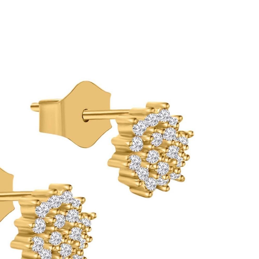 حلق ذهب زركون قطعة مصنوعة باحترافية تجمع بين الذهب الأصفر النقي ولمعان الفصوص الصغيرة، لتمنحك إطلالة مشرقة مميزة في كل مناسبة، حلق نسائي فاخر خيار مثالي لمن تبحث عن التميز والإنفراد.