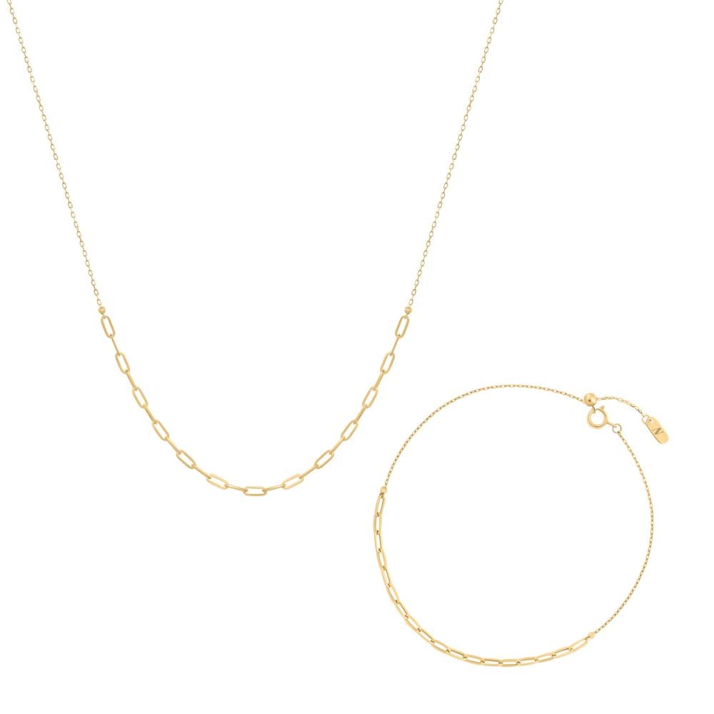 استمتعي بإطلالة ساحرة مميزة في كل مكان مع نصف طقم ذهب جنزير المصمم باحترافية يجمع بين لمعان الذهب الأصفر وبساطة التصميم ليكون الخيار المثالي للمرأة العصرية.
