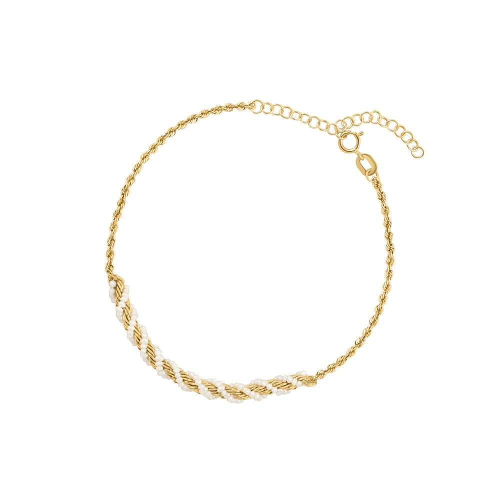 • تصميم مبروم فاخر ثنائي اللون يجمع بين الذهب واللؤلؤ، يمنحك إطلالة راقية.